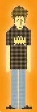 Calendar Geeks: (1) A repeat of the Fahrenheit-451 flamethrower/firefighter shirt. (2) A blue shirt with a pixelized Bert and Ernie from Sesame Street. Some writing is underneath the picture. (3) Burgundy shirt with the writing, "Nothing is any good if other people like it." (4) Black shirt with dozens of Pac-Man ghost silhouettes in blue and purple.